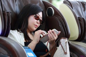 (裸足)红衣轻熟妇脱掉高跟露原味玉足坐在按摩椅上舒缓她的脚丫,脚型真好看,略有点脚气!19张