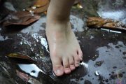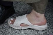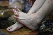 (袜子)好有气质的长发美女啊,伸直双腿秀灰色长棉袜子美脚,袜子加大码,腿型真好看!21张