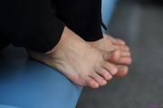 在刚拍摄过程中原本以为小弟只拍到一位女生的裸足,另一位女生的黑色棉袜子,殊不知,过了几分钟以后戴眼镜穿黑棉袜子的美女生居然还把棉袜子给脱了下来,直接秀出更水嫩的玉足来,这下真的把我看兴奋了!穿黑衣的美女生长得实在太可爱漂亮了,而且她的脚丫是最性感的,无论是脚面还是脚底,都是会让人看得很兴奋的,脚型非常的好,纤薄的足弓,精致的脚趾,每一根脚趾都有一定空间的缝隙,真让人浮想联遍,脚底更是漂亮至极,完美的脚底脚型,白皙的脚底心,轻微略脏的脚底两边,还有那修长迷人的玉腿,保养太好了,旁边的眼镜清纯女生是穿着黑色短棉袜子的,刚好思路是打造一套裸足+棉袜的佳作,一看这黑色棉袜子就知道她脚型很好的,上扬起袜子脚底,仿佛想让我拍个痛快,尽管穿着棉袜也能感受到她的脚趾的修长,不过小弟还是重点拍摄黑衣女生的脚丫,她不仅给大伙们展示丰富的脚面动作,还交叉双脚秀性感的脚底.当小弟离开又回来时候,这位眼镜清纯女生居然把黑色棉袜给脱了,我的天啊,她的脚丫真心水嫩,脚趾更是水嫩得不行,仿佛是出水芙蓉,脚底更是嫩得不要不要的,透红水嫩,又干净,坐起来左脚弯曲直接秀出白里透红的脚底,真的超嫩啊, 原来她是穿高邦黑色冬靴的,又是从黑色棉袜子中脱出来的,难怪这么嫩,太让人兴奋了!