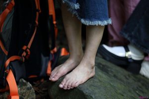 (山水裸足)三位青春姑娘同台PK玉足,眼镜姑娘的脚柔软,脚趾修长;白衣姑娘的脚最标准;黄衣姑娘的脚丫动作最性感!70张