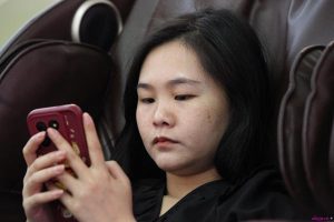 (袜子)被按摩椅按摩得舒服得不要不要的年轻美女生脱掉黑色洞洞鞋露黑色棉袜子美脚,袜子原味脚型又性感纤薄!25张