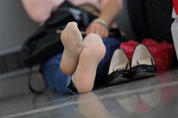 (丝袜)少妇脱掉鞋以后坐姿迷人,丝袜脚底很好看,脚趾也很好看,原味!55张